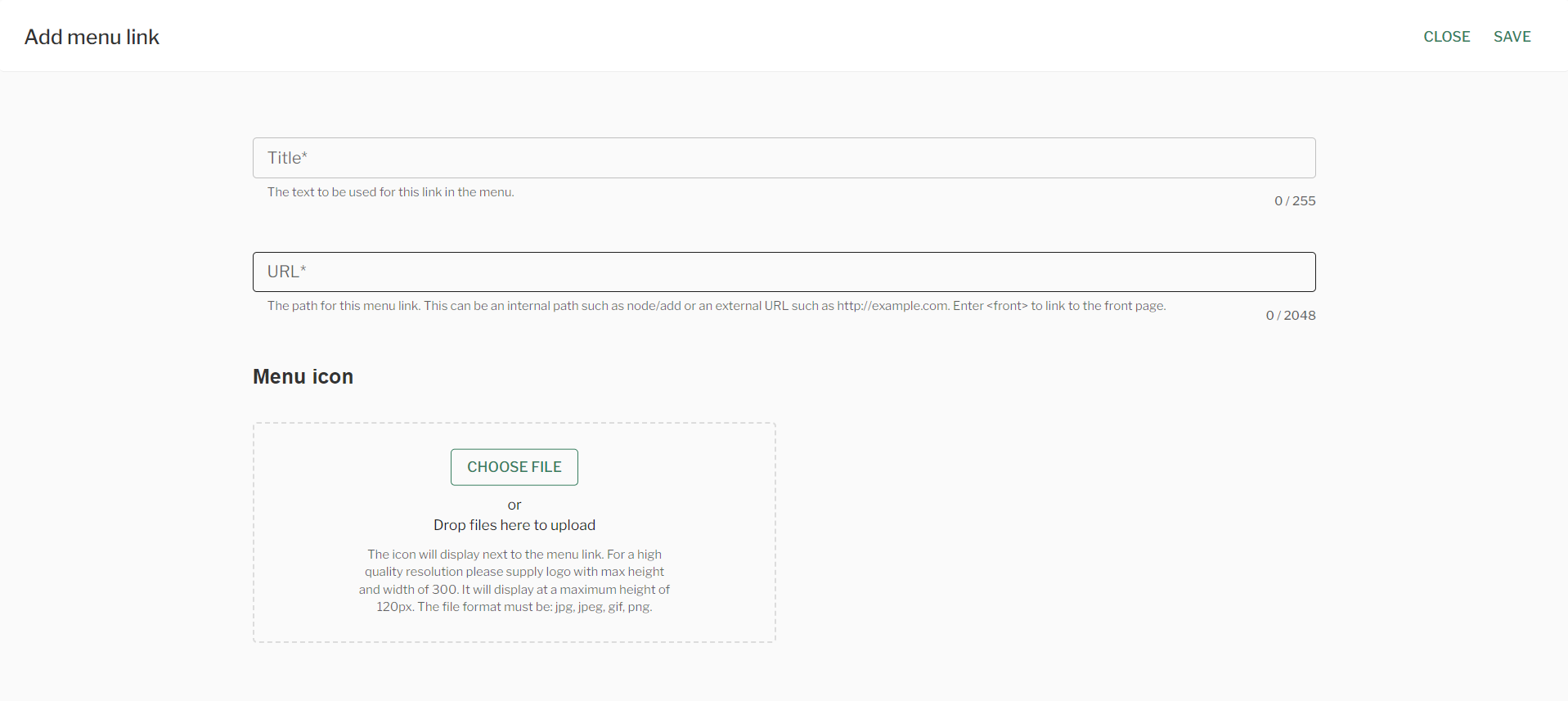 - Input a ‘Title‘, ‘URL‘ and add a ‘Menu Icon‘