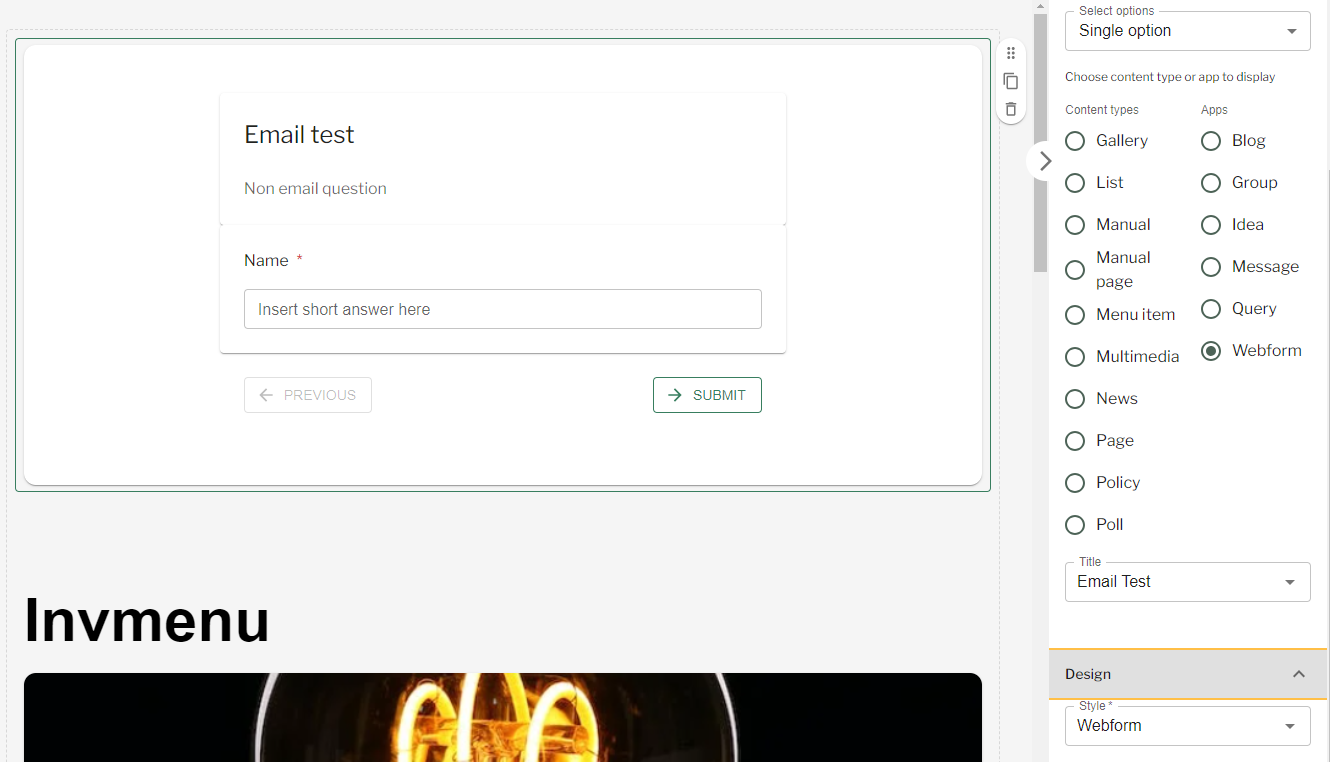 - Under ‘Style‘ ensure ‘Webform‘ is selected